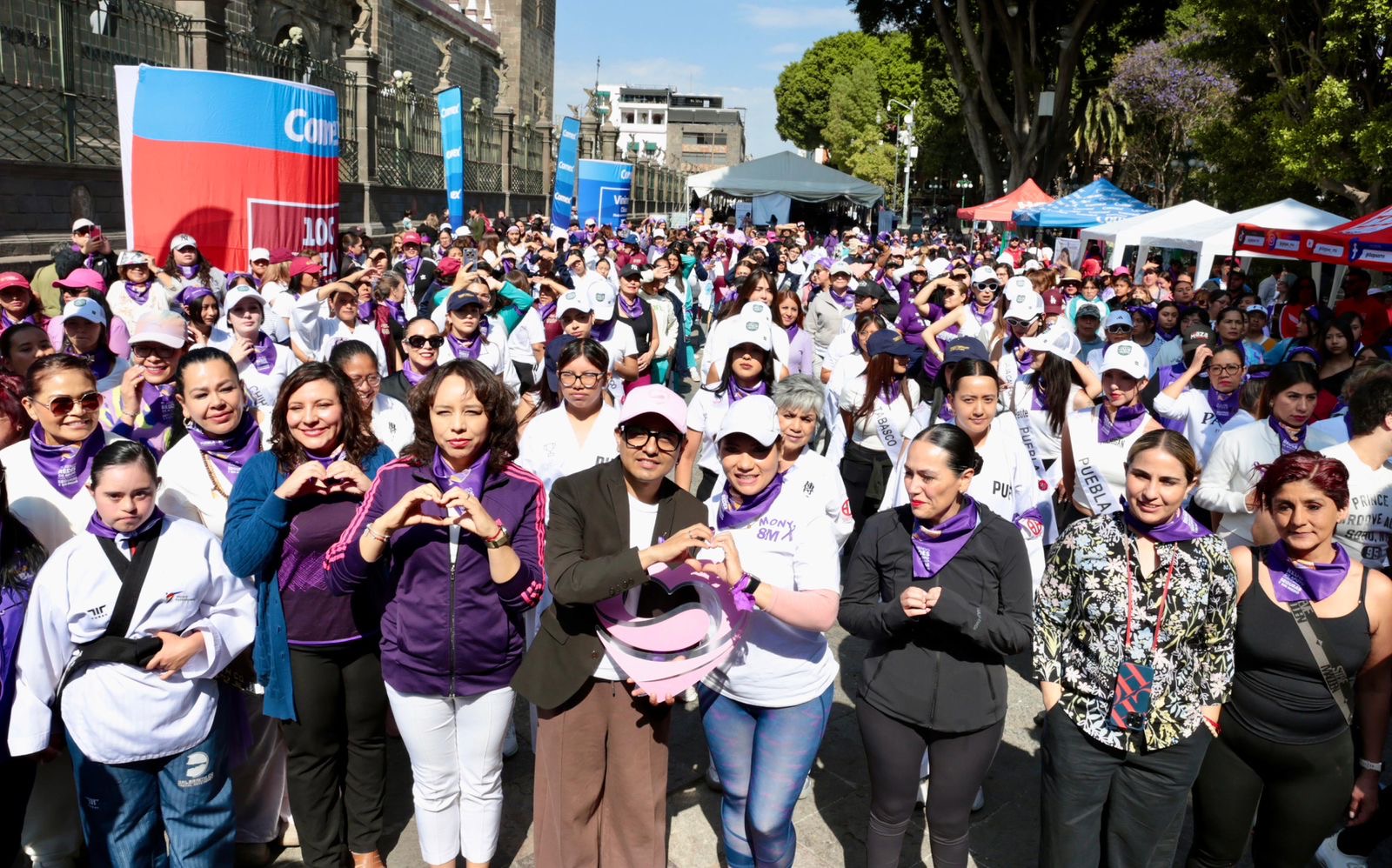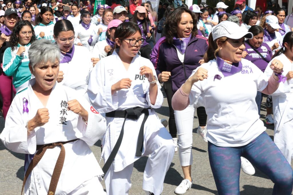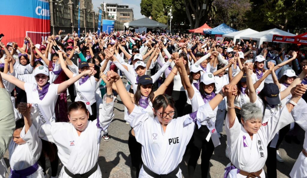 Cientos de poblanas participaron en una clase masiva de karate enfocada en defensa personal 💪✨, organizada por el Gobierno estatal en el marco del Día Internacional de la Mujer. La actividad buscó fortalecer la seguridad, la confianza y la organización comunitaria entre niñas, jóvenes y adultas 🛡️🤝