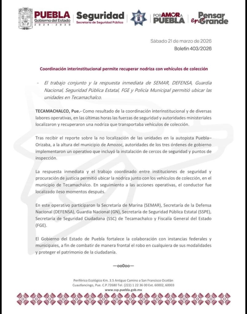 Gracias a la coordinación interinstitucional, autoridades lograron ubicar y recuperar una nodriza con autos de colección 💪🔥