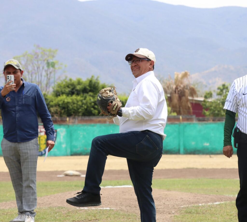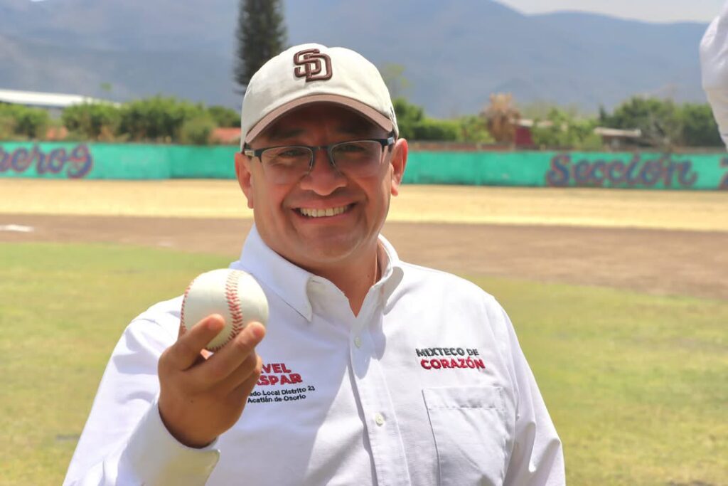 El diputado Pável Gaspar Ramírez visitó el emblemático campo “Salvador Esquer Apodaca” en Atencingo, Chietla 🏟️, donde realizó el lanzamiento de la primera bola en el emocionante partido entre Azucareros y Cachorros 🧢💥