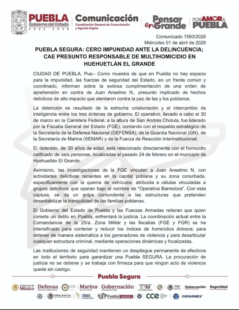 Se le relaciona con el homicidio de 6 personas en Huehuetlán El Grande y con actos violentos en la capital 🛑🔥