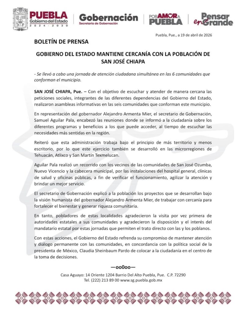 Bajo el principio de “más territorio y menos escritorio”, estas acciones también se replican en regiones como Tehuacán, Atlixco y San Martín Texmelucan 🌎