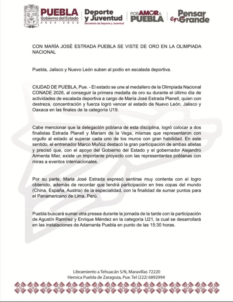 María José Estrada Planell le da a Puebla su primer oro en la Olimpiada Nacional CONADE 2026 💥✨